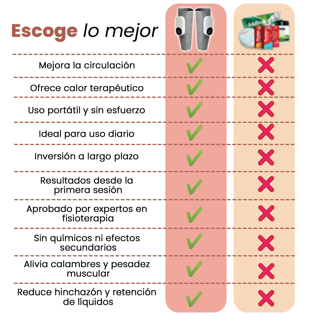 Alivia la pesadez, los calambres y la inflamación con tecnología de compresión y calor que activa la circulación y relaja los músculos.