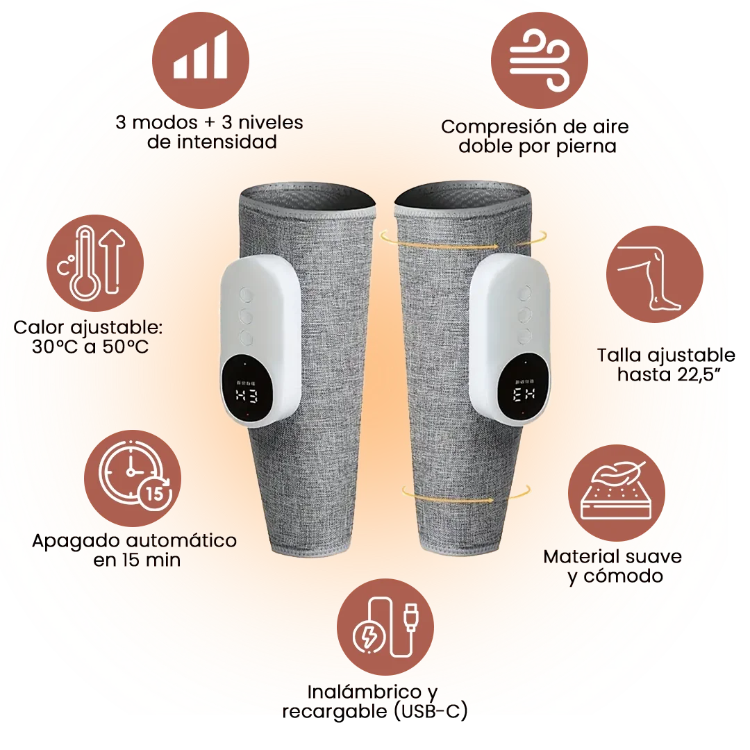 Basado en tecnología de compresión de aire y calor profundo, este sistema estimula la circulación, alivia calambres, reduce la hinchazón y ayuda a que tus piernas se sientan renovadas.